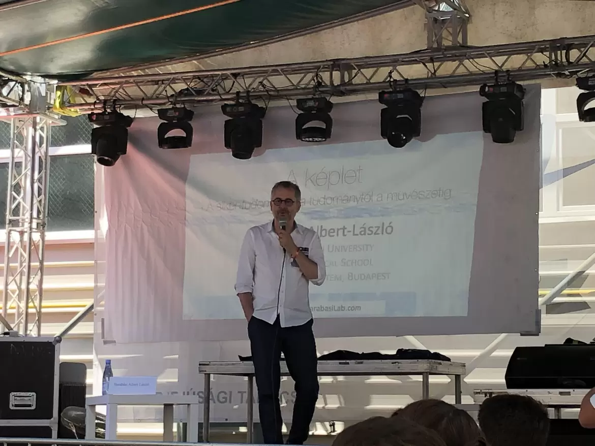 13:00 órától részt vettünk Barabási Albert László fizikus, hálózatkutató előadásán, ahol A képlet című könyvében megjelent kutatási eredményeiről beszélt. Megtudhattuk, hogy a cégeken belüli kommunikációs hálóktól kezdve a sejteken belüli hálózatokon át számos területen folytat kutatásokat, ezek közül az egyik legérdekesebb terület az egyén és a közösségi háló viszonyának vizsgálata, jelen esetben az egyéni teljesítmény és a siker kapcsolatának szempontjából. Megjósolható-e a siker mértéke az egyéni teljesítmény alapján? Mitől függ a siker? A professzor úr számos példán keresztül – az élsportolók eredményeinek hajszálnyi különbségeitől kezdve, az irodalom terén a könyvsikerlisták kialakulásán át a művészvilág hálózatának befolyásáig – mutatta be kutatását. Megállapításait nagyon leegyszerűsítve úgy összegezhetnénk, hogy az egyéni teljesítmény korlátos, míg a siker korlátlan, és a közösség által meghatározott. Reméljük, hogy a professzor urat a közeljövőben mentoraink között üdvözölhetjük.