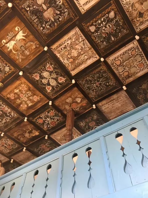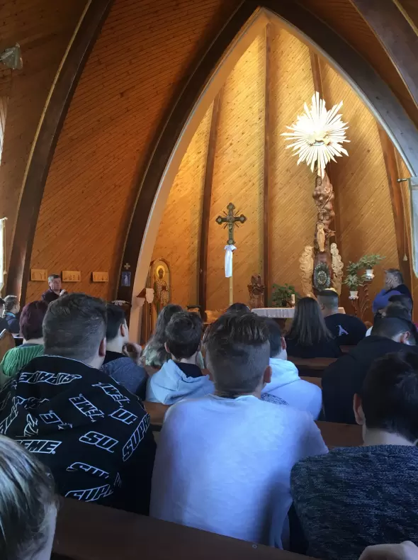 Az iskolából az utunk a templomba vezetett. Először a Makovec stílusú görög-római katolikus templomot mutatta be nekünk a gyülekezet egyik tagja, majd megtekintettük a híres református templomot is, melynek mennyezetét gyönyörű fakazetták fedik, valamint Kárpátalja egyik legmagasabb harangtornyával rendelkezik.